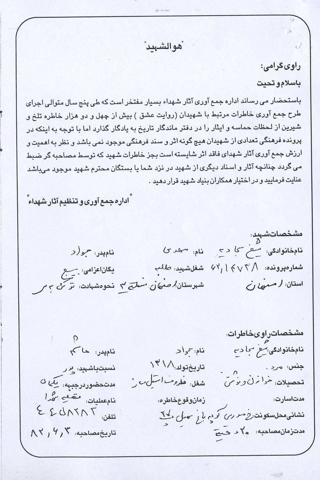 اسناد شناسه: 241402 ۱۴۰۰-۱۲-۲۰ ۰۵:۳۹ 0 دیدگاه اسناد مرتبط با شهید مهدی شیخ سجادیه دانلود : 914103671.jpg دانلود : 676030584.jpg دانلود : 646888955.jpg دانلود : 1443161759.jpg دانلود : 2035587101.jpg دانلود : 1937486162.jpg دانلود : 2095569732.jpg دانلود : 2115471716.jpg دانلود : 749428429.jpg دانلود : 1140569146.jpg دانلود : 1439471505.jpg
