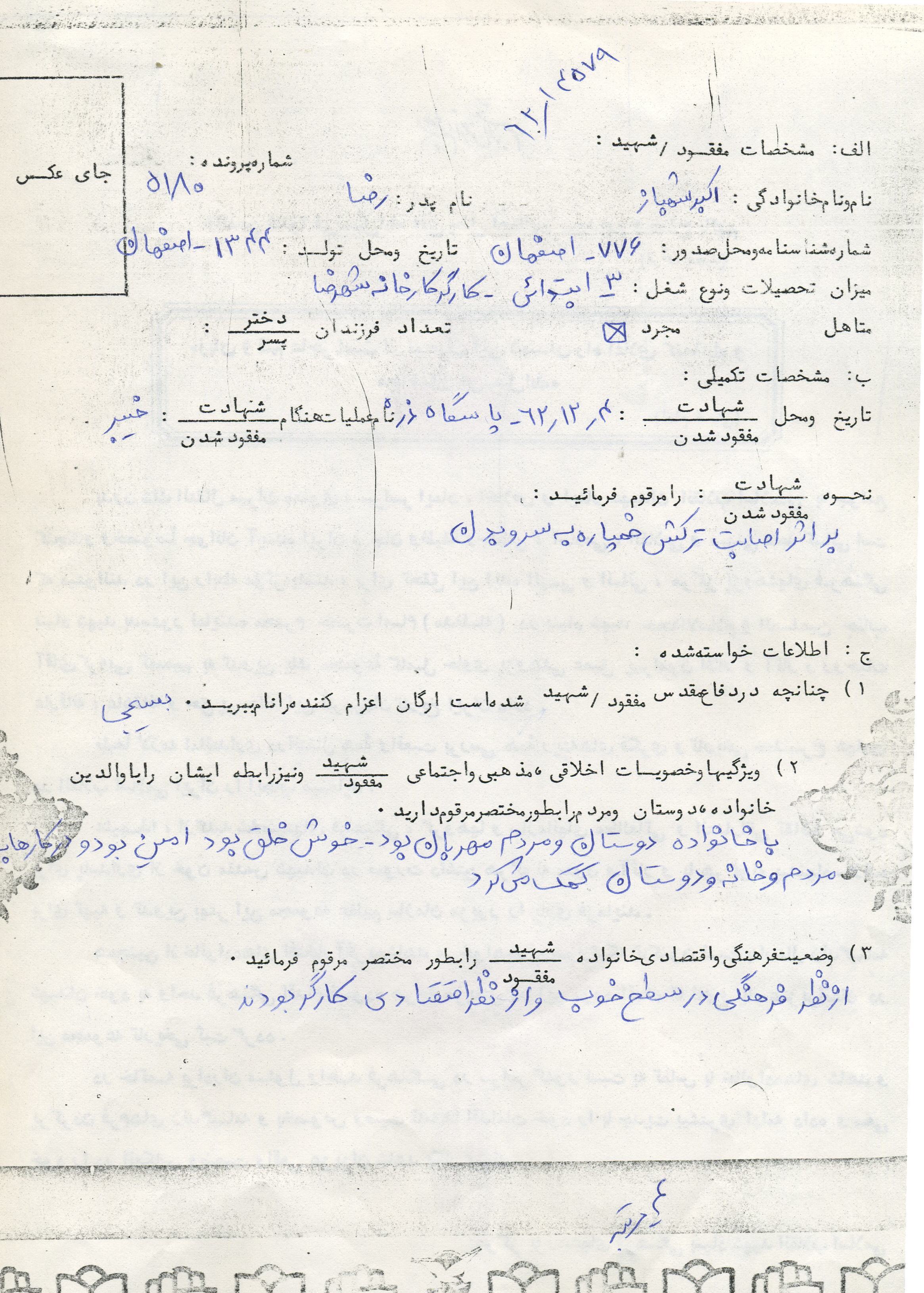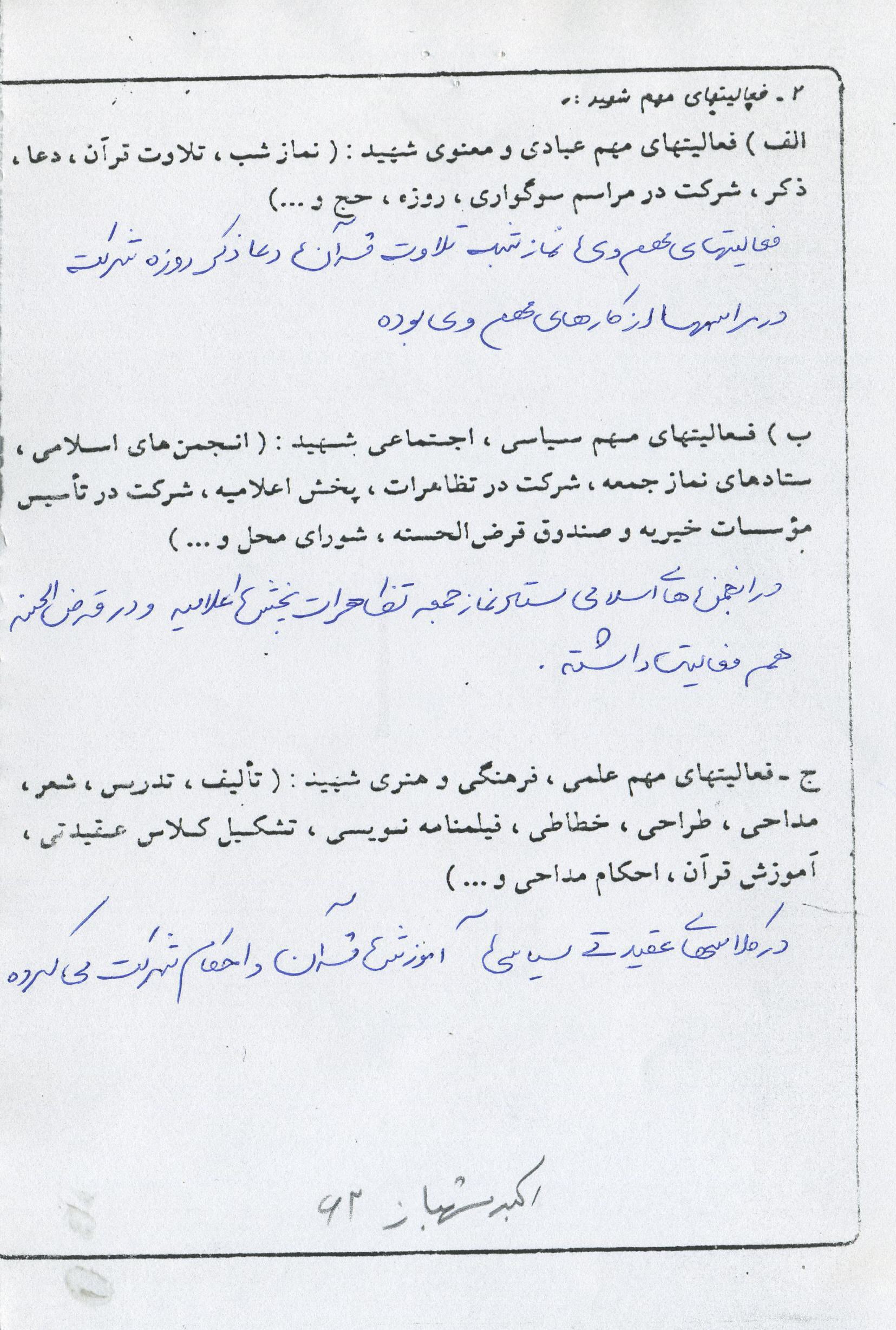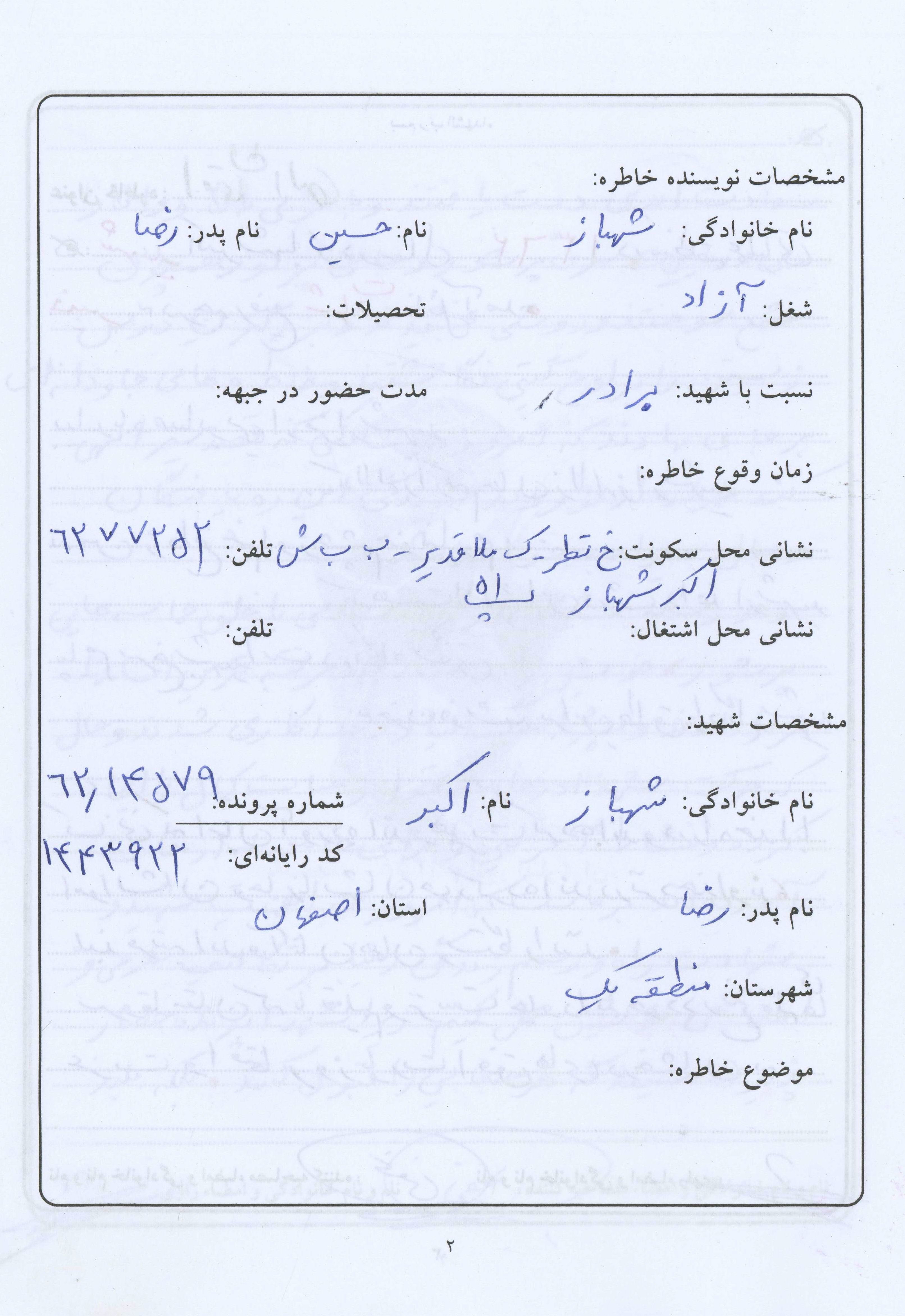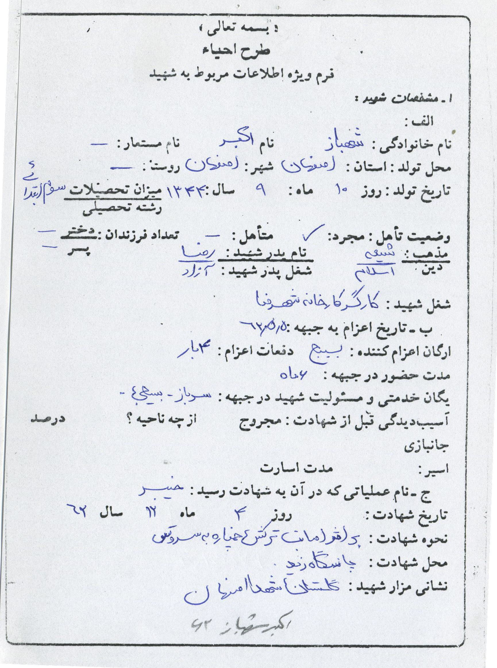 اسناد مرتبط با شهید اکبر شهباز