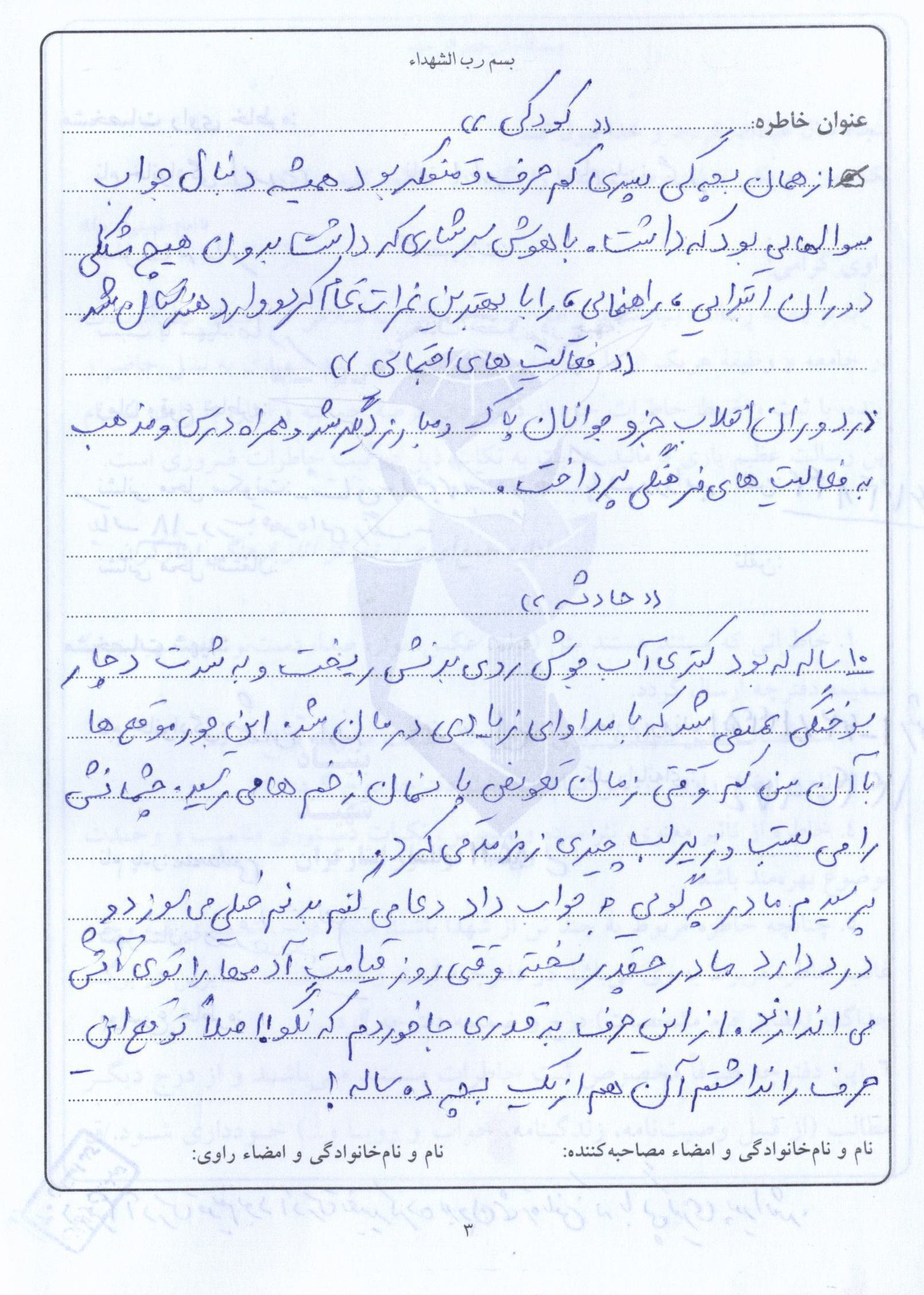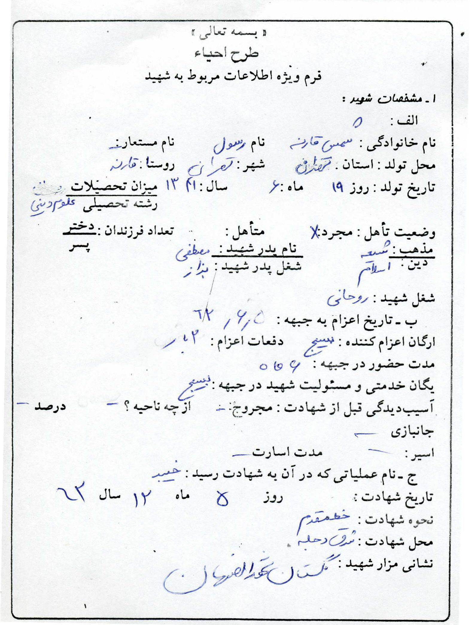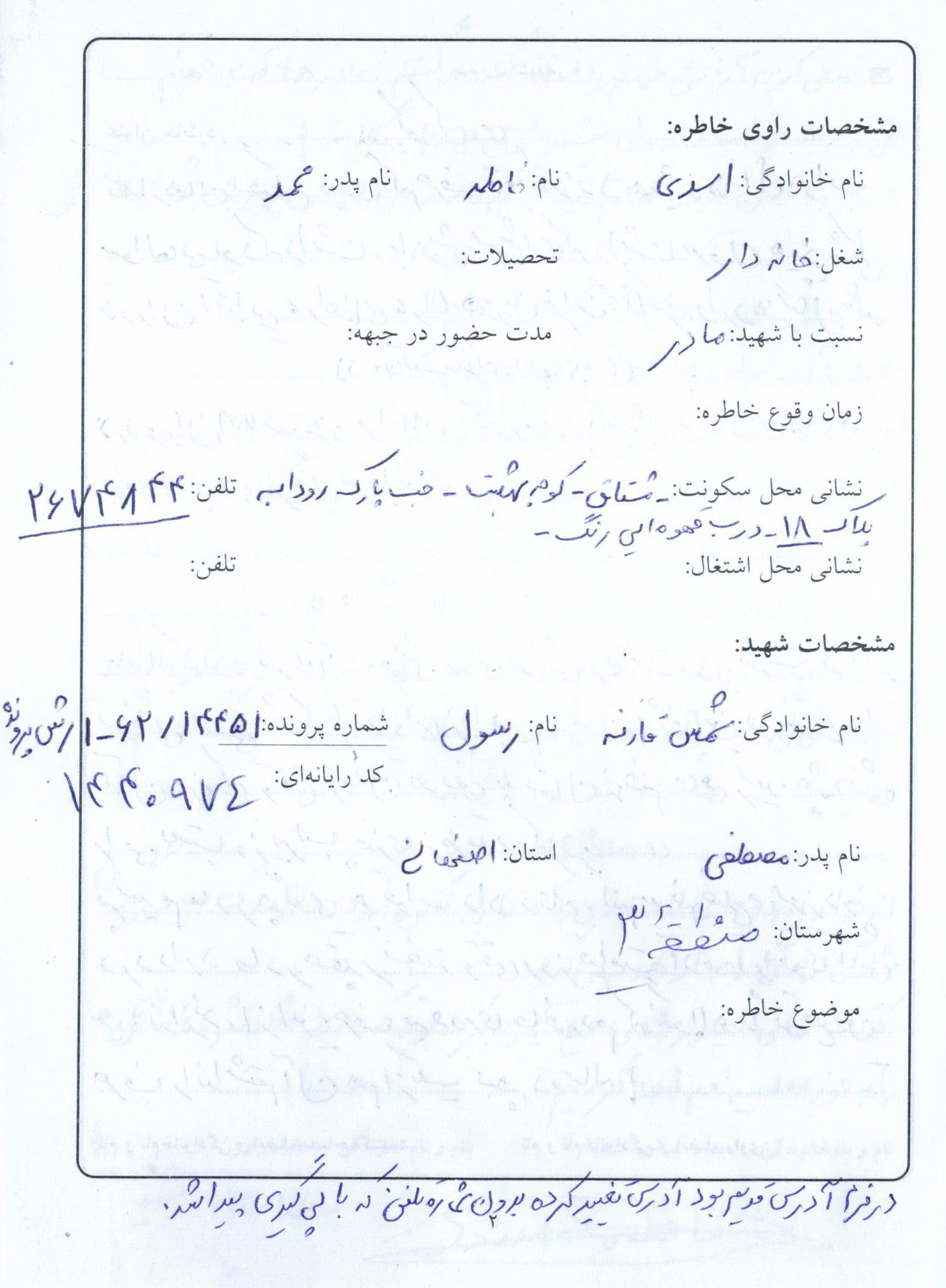 اسناد مرتبط با شهید رسول شمس مقارنه