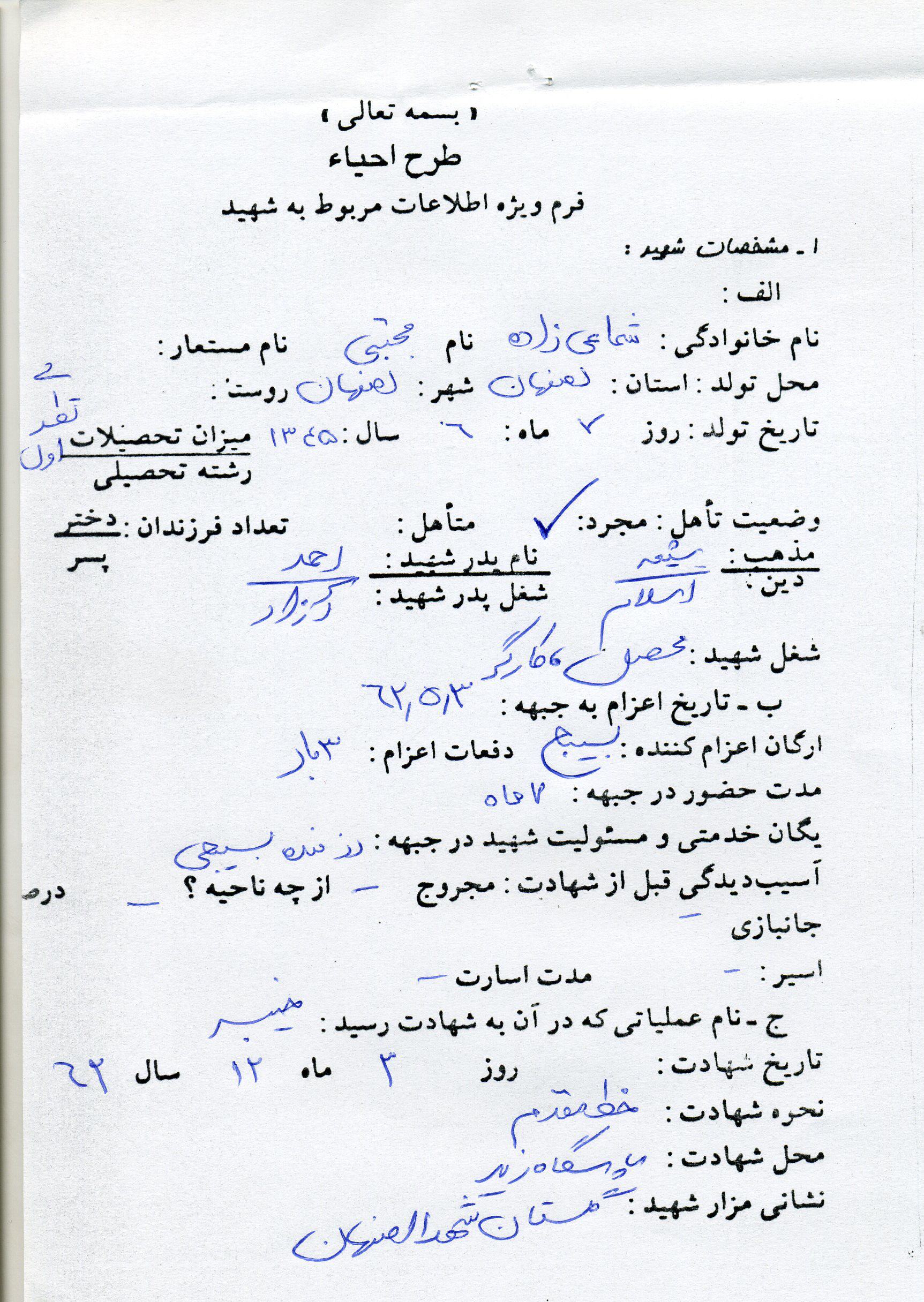 اسناد مرتبط با شهید مجتبی شماعی زاده