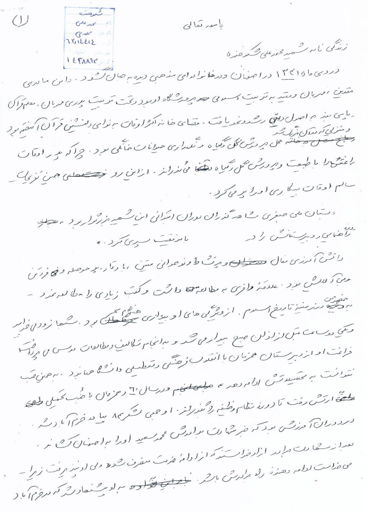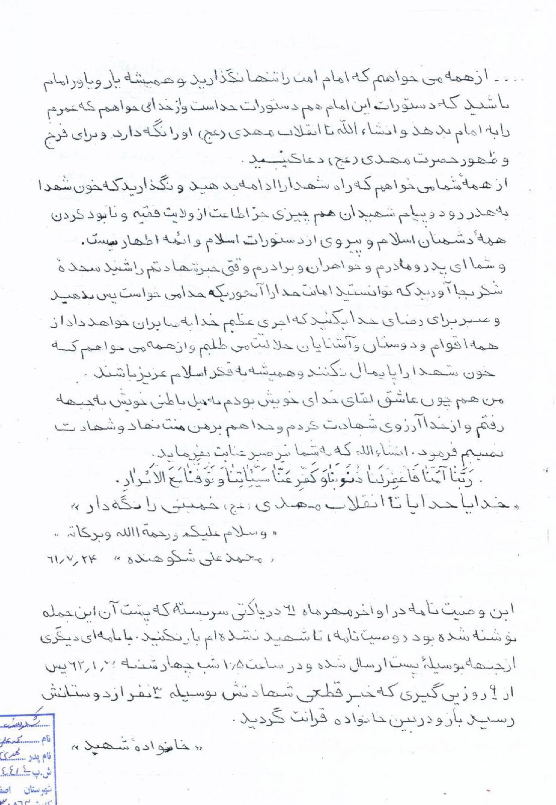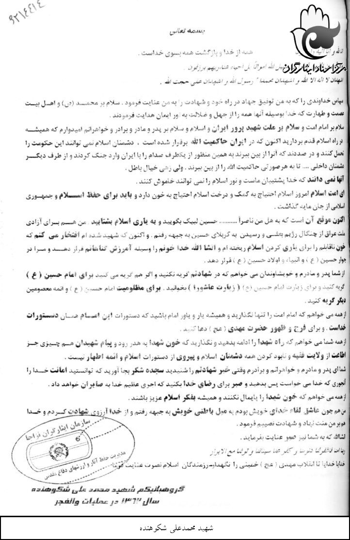 اسناد مرتبط با شهید محمدعلی شکوهنده