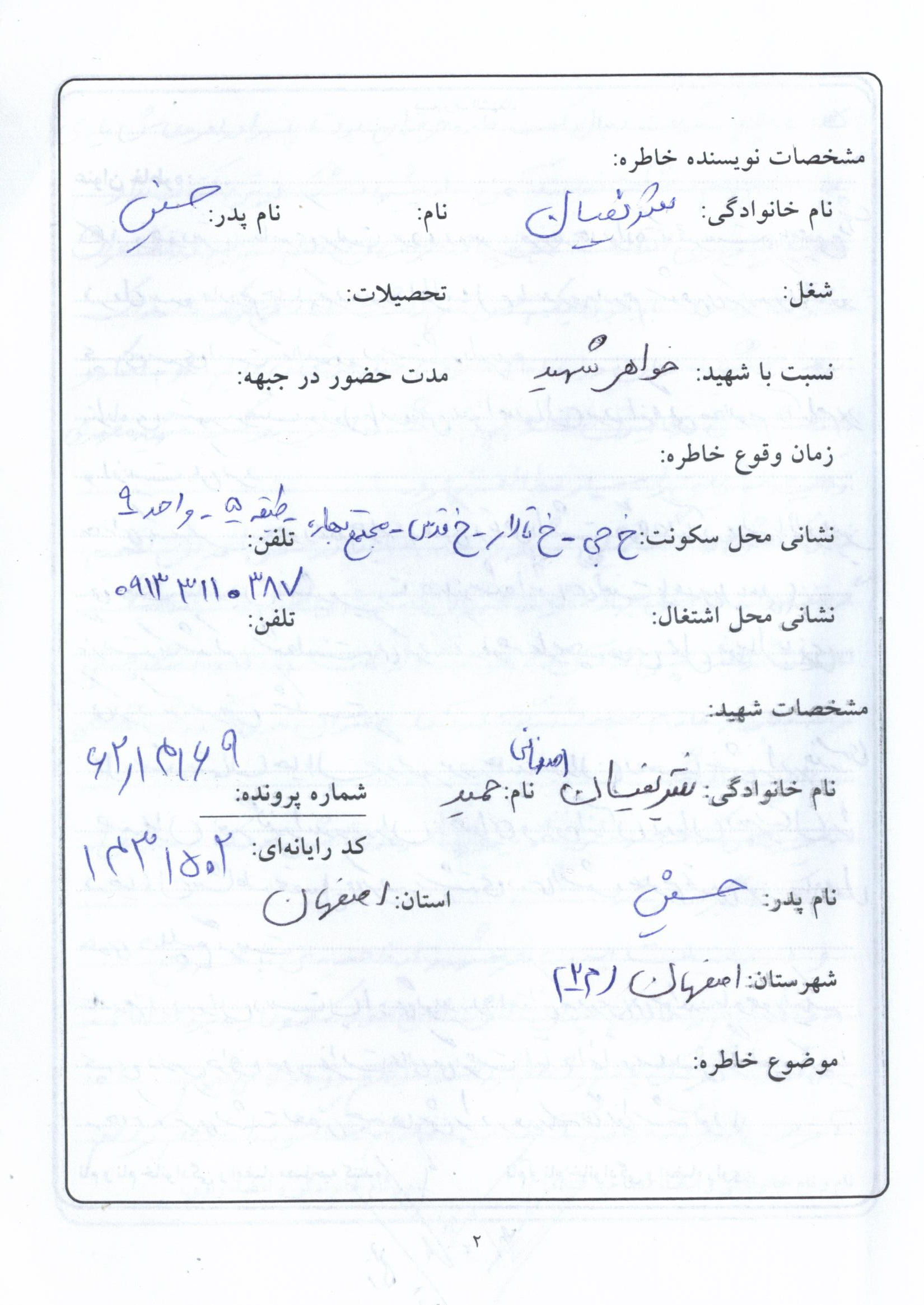 اسناد شناسه: 242069 ۱۴۰۰-۱۲-۲۰ ۰۵:۴۷ 0 دیدگاه اسناد مرتبط با شهید حمید شریفیان اصفهانی دانلود : 1441773819.jpg دانلود : 988576844.jpg دانلود : 1234393809.jpg دانلود : 1465474027.jpg دانلود : 1126817987.jpg