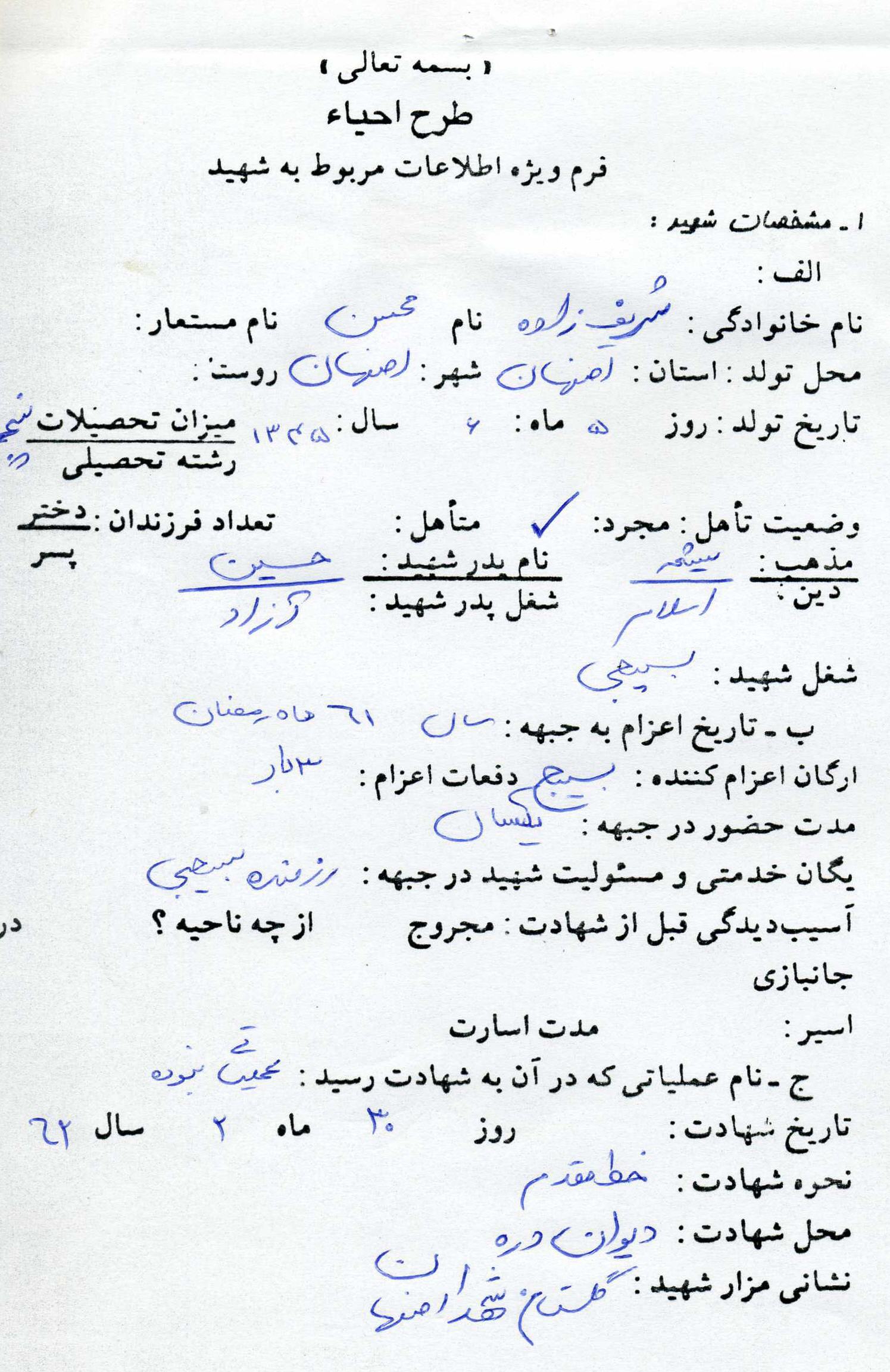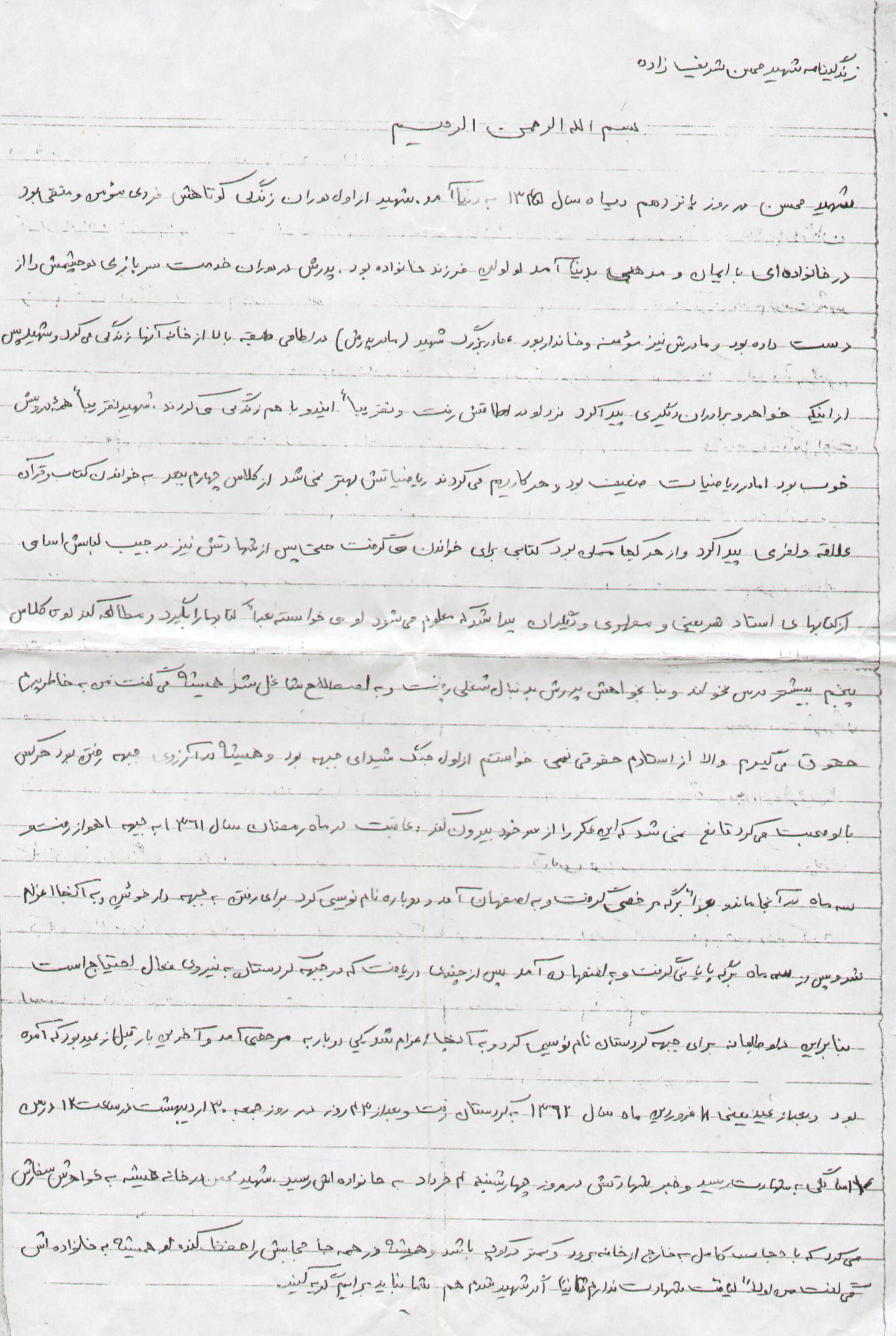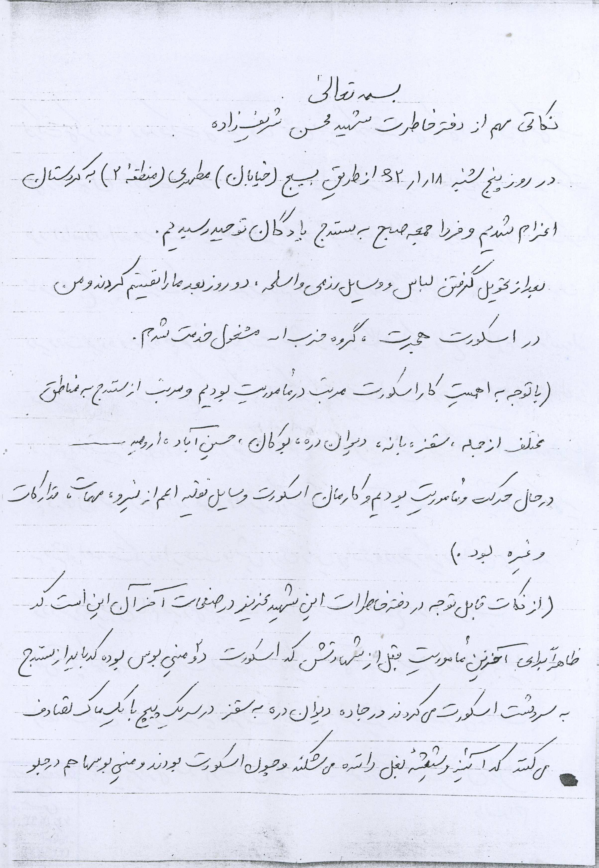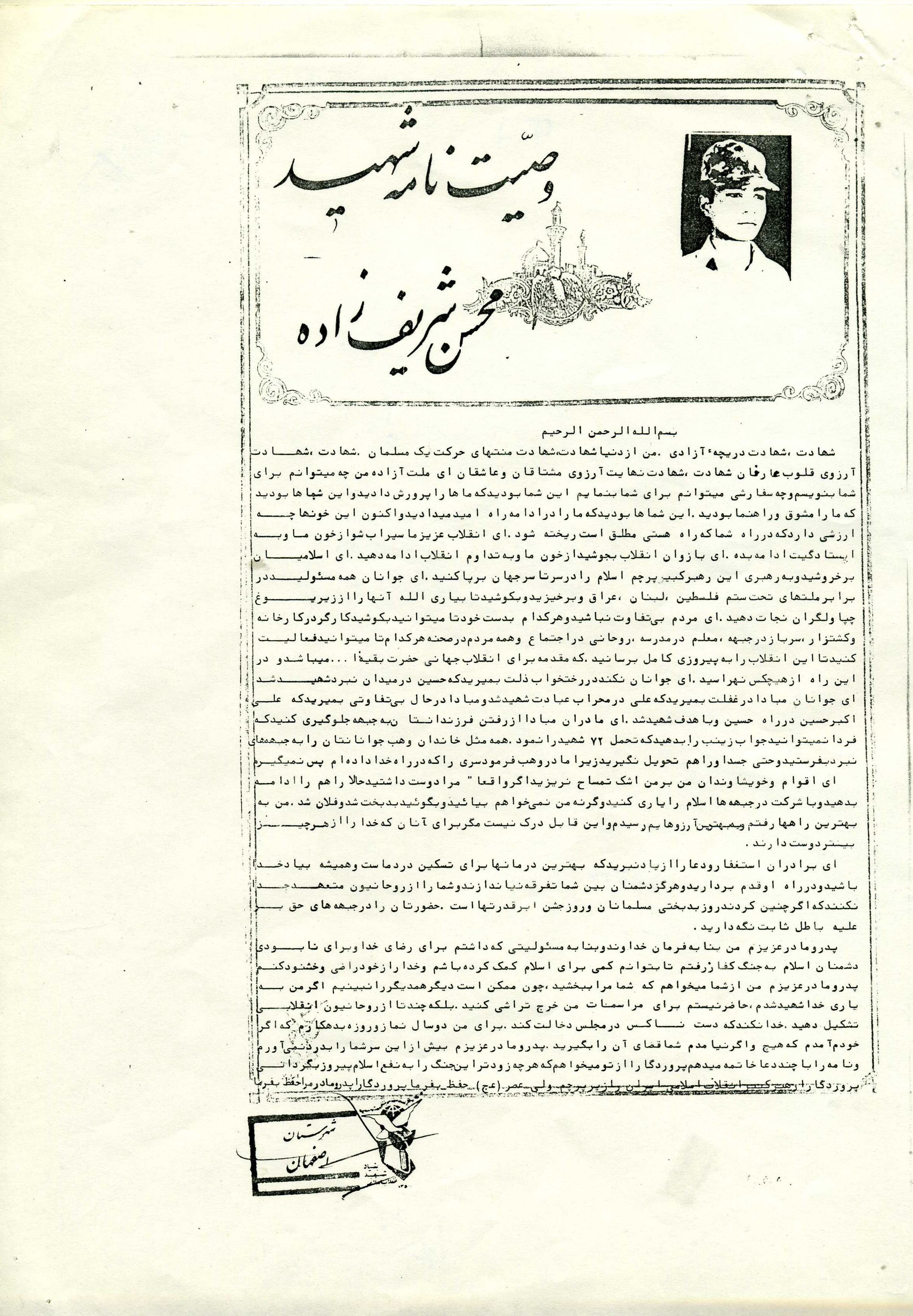 اسناد مرتبط با شهید محسن شریف زاده طادی