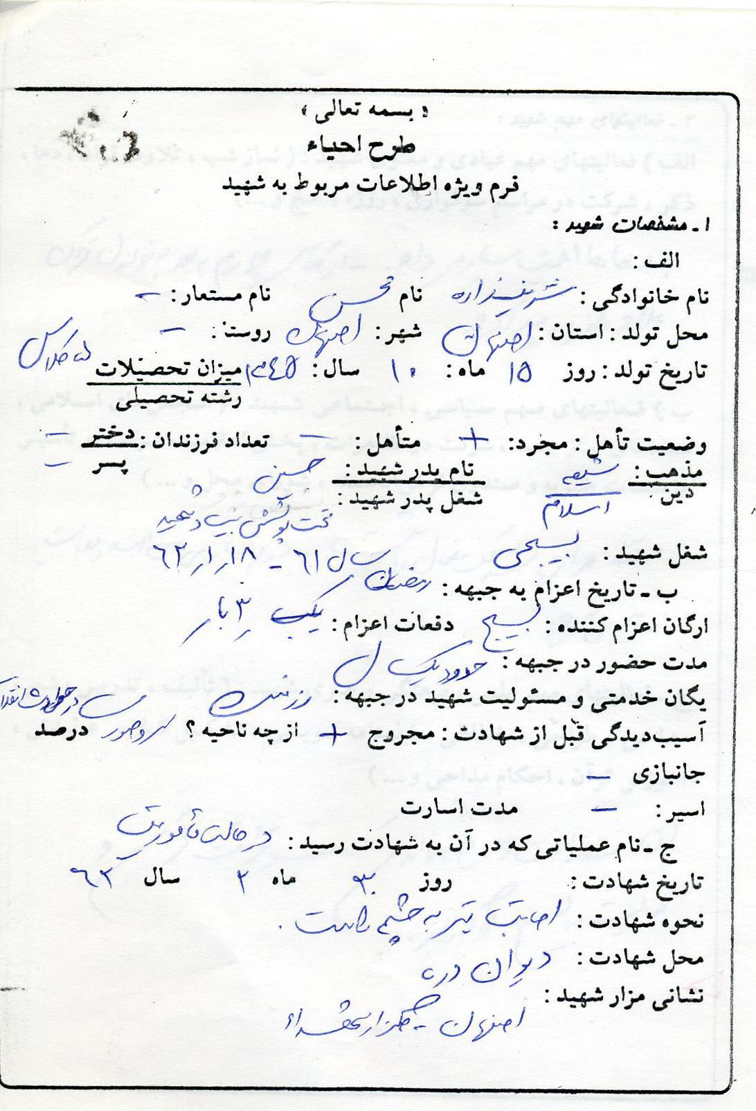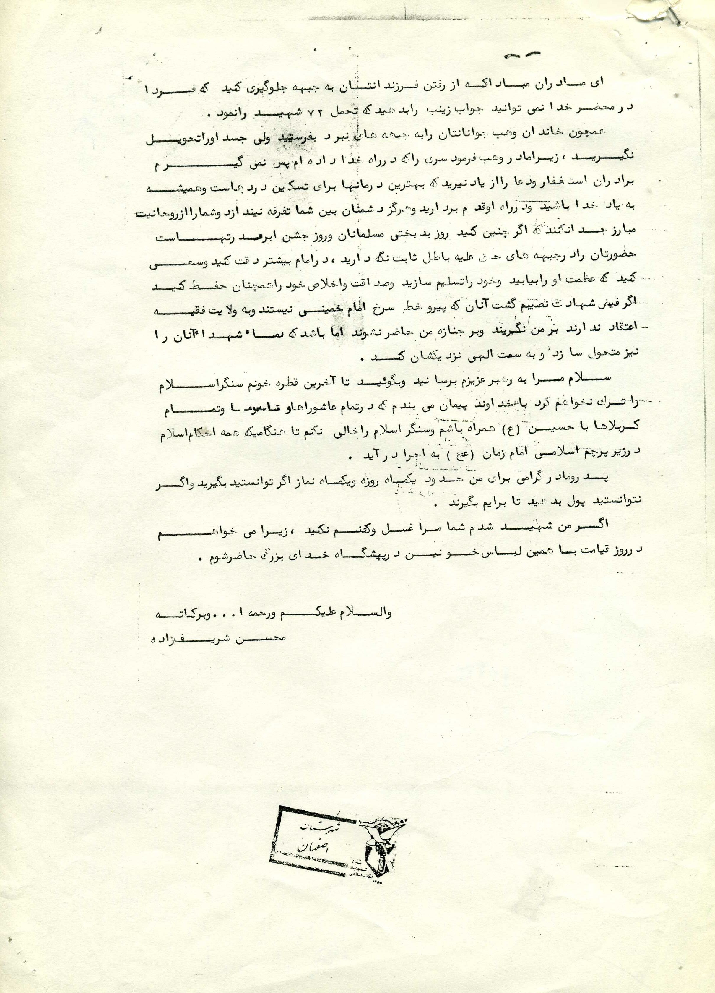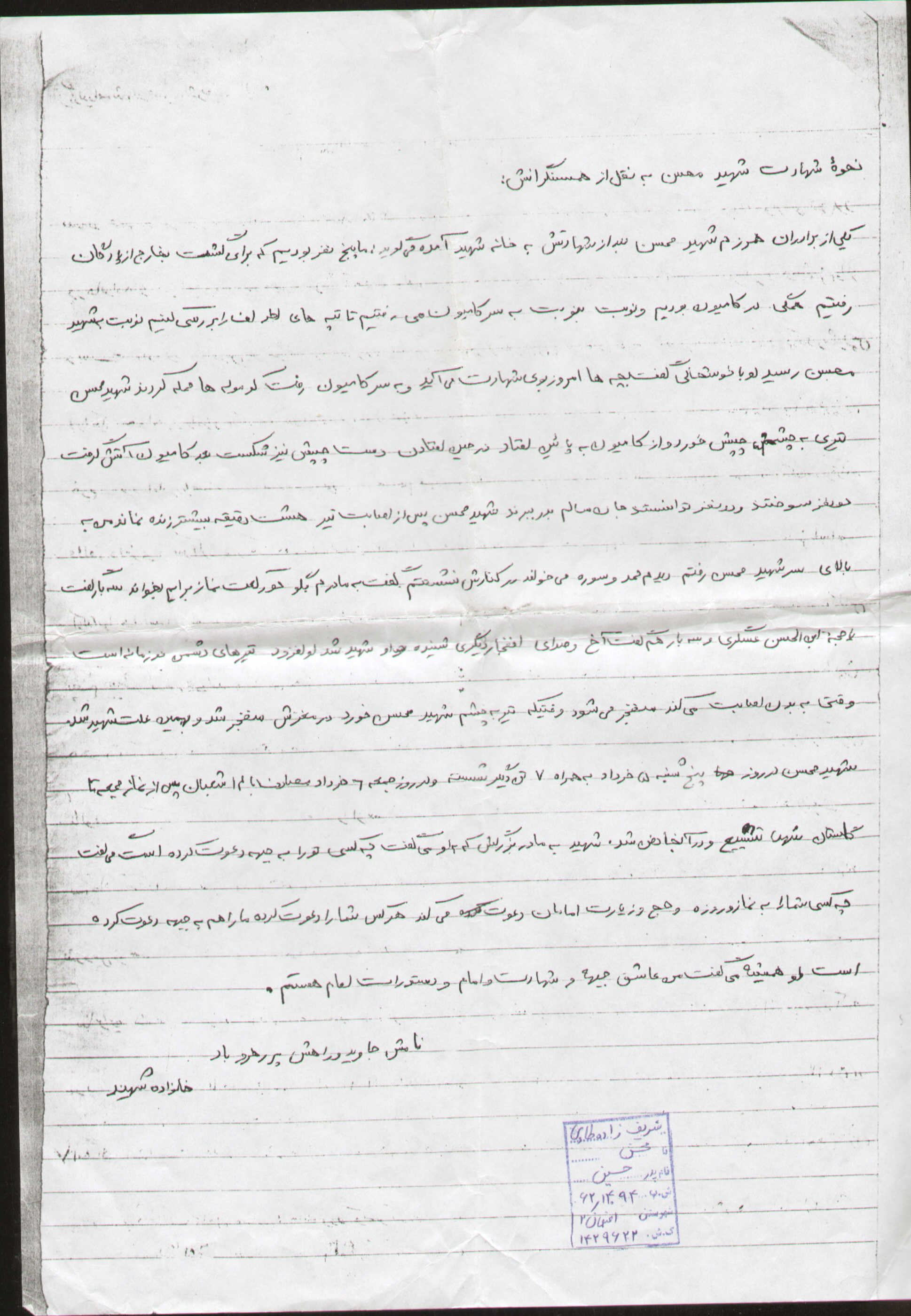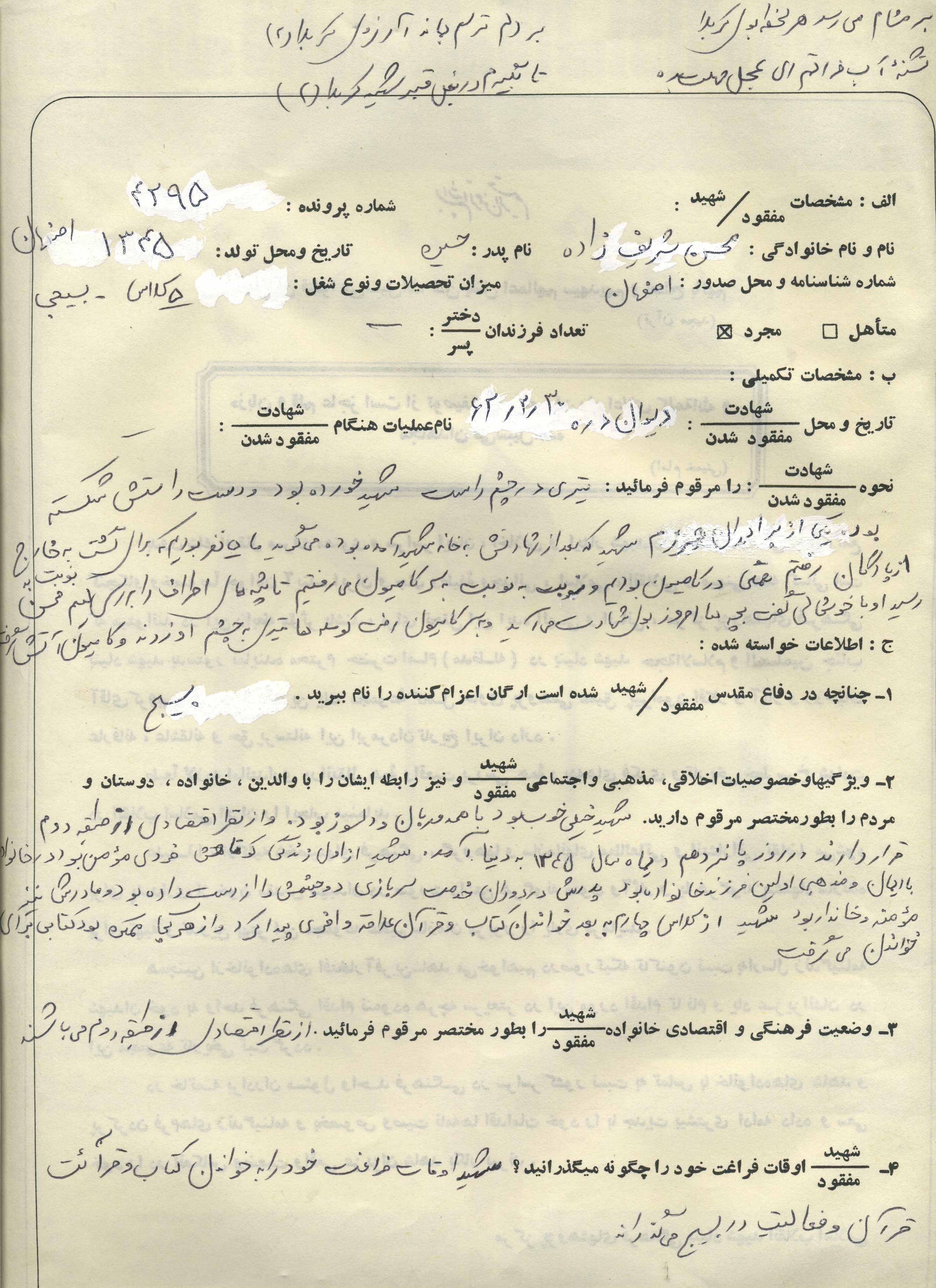 اسناد مرتبط با شهید محسن شریف زاده طادی