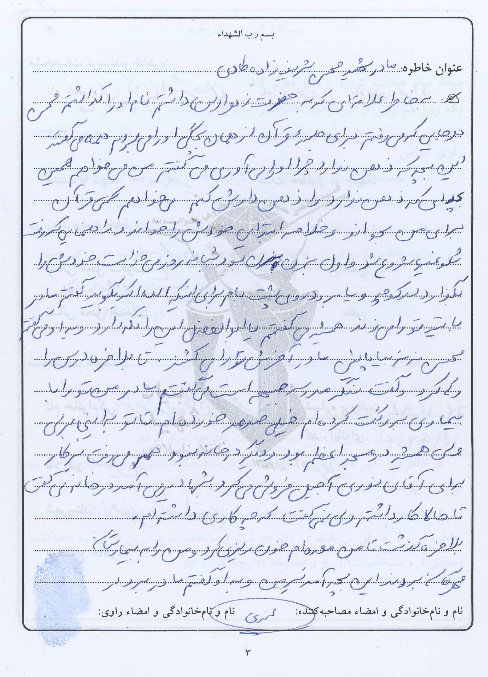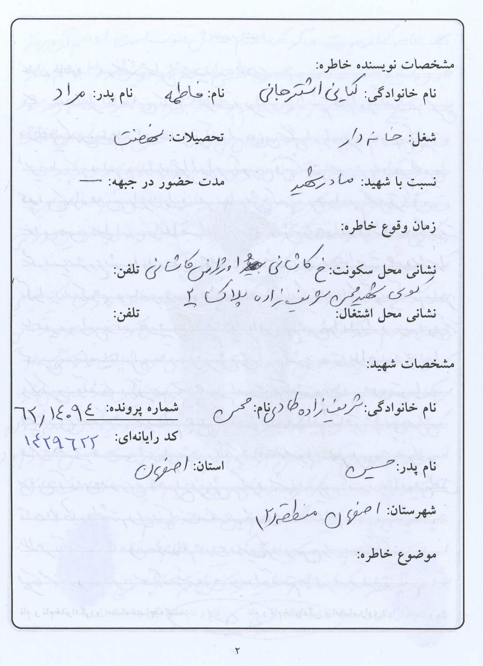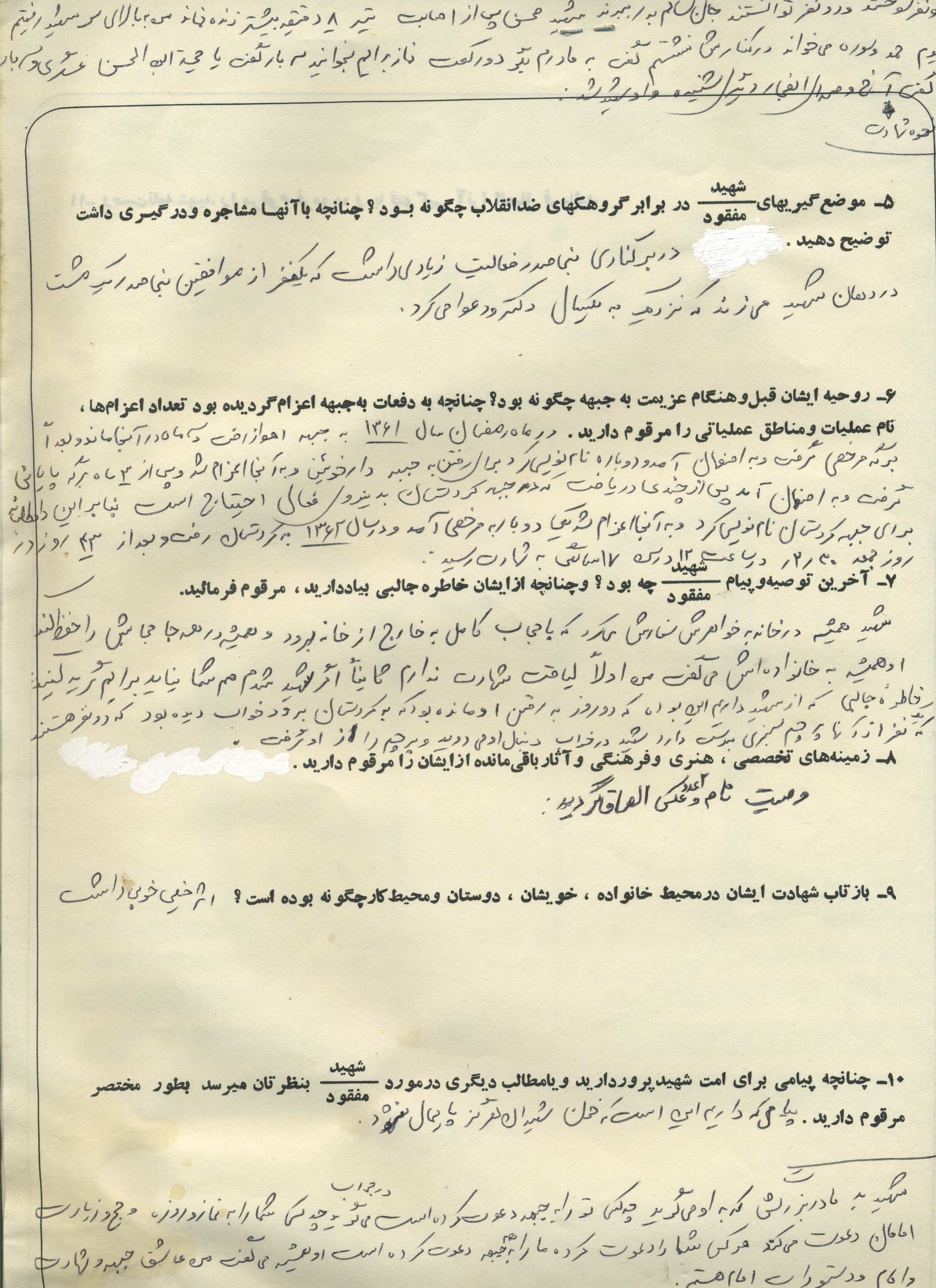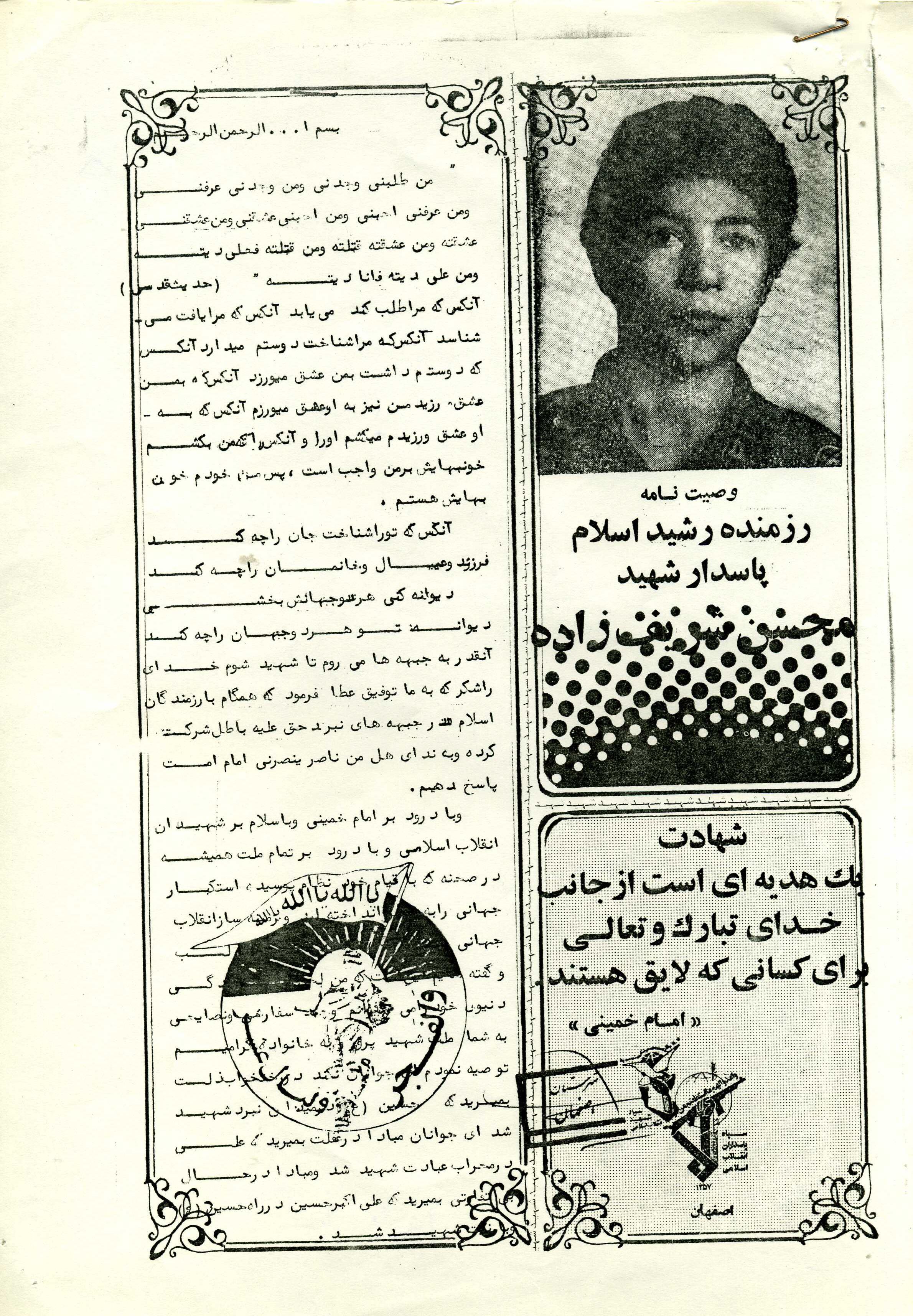 اسناد مرتبط با شهید محسن شریف زاده طادی