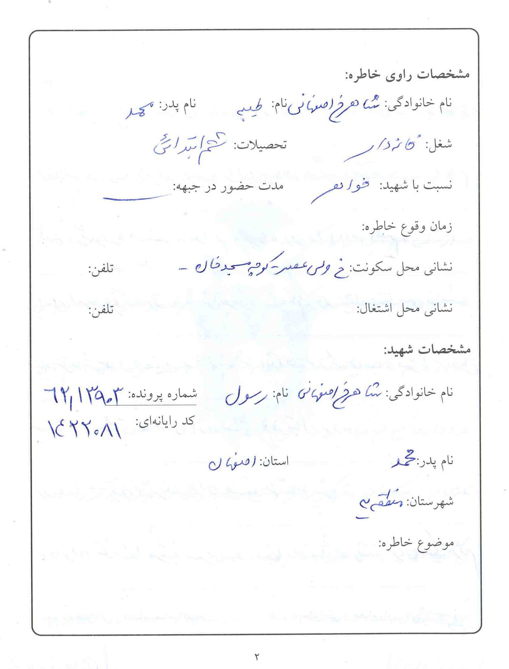 اسناد مرتبط با شهید رسول شاهرخ اصفهانی