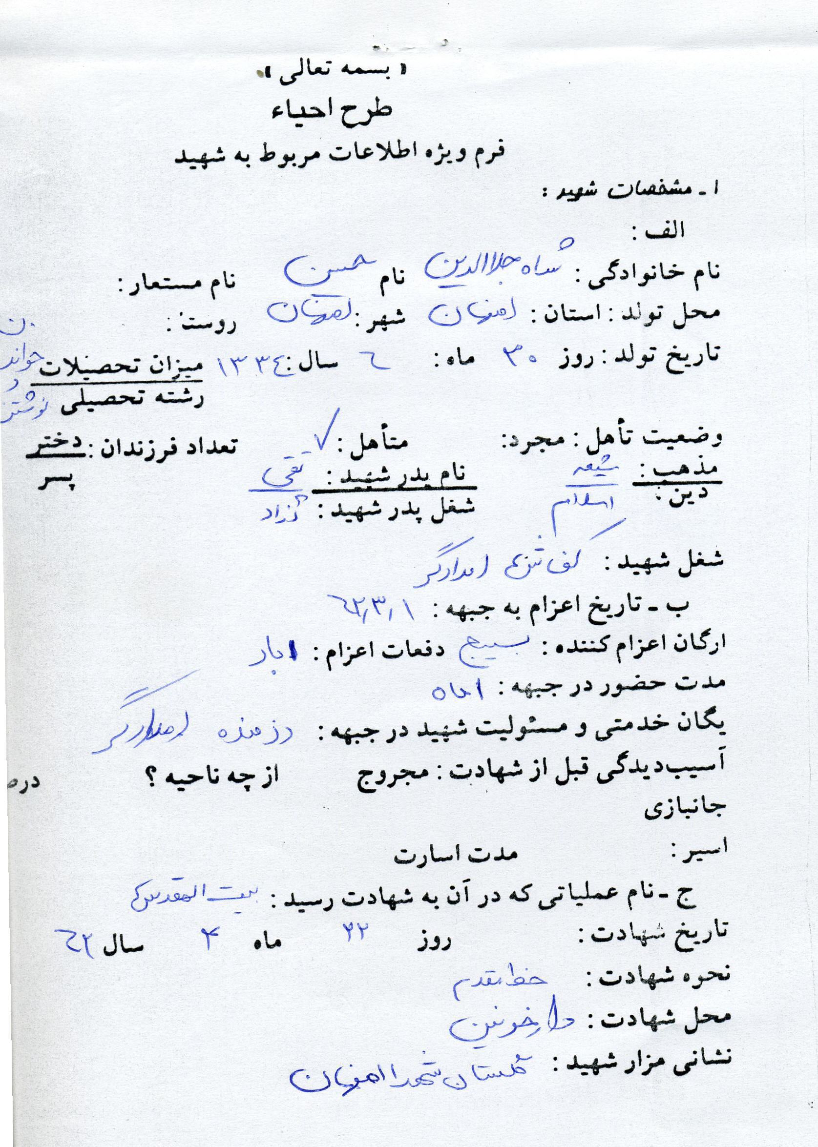 اسناد مرتبط با شهید حسین شاه جلال الدین