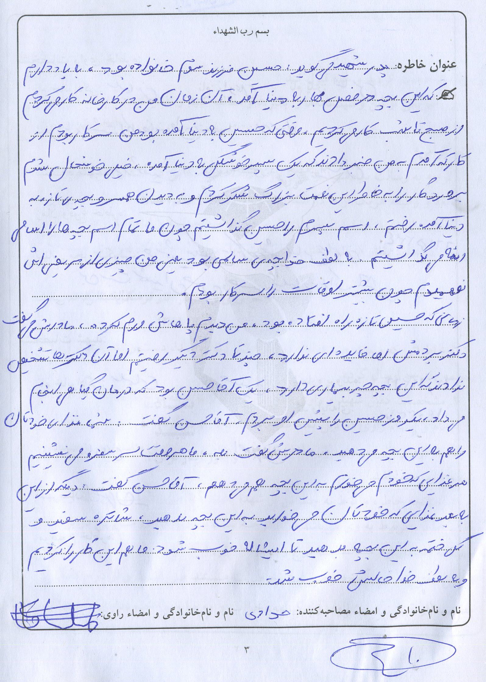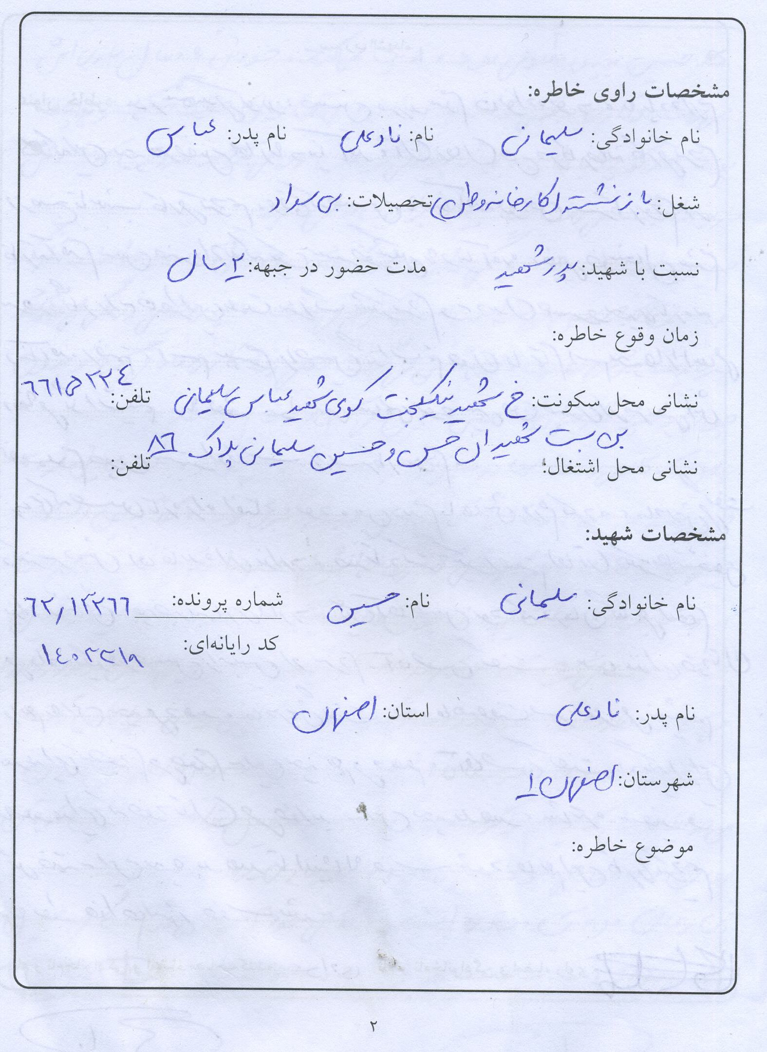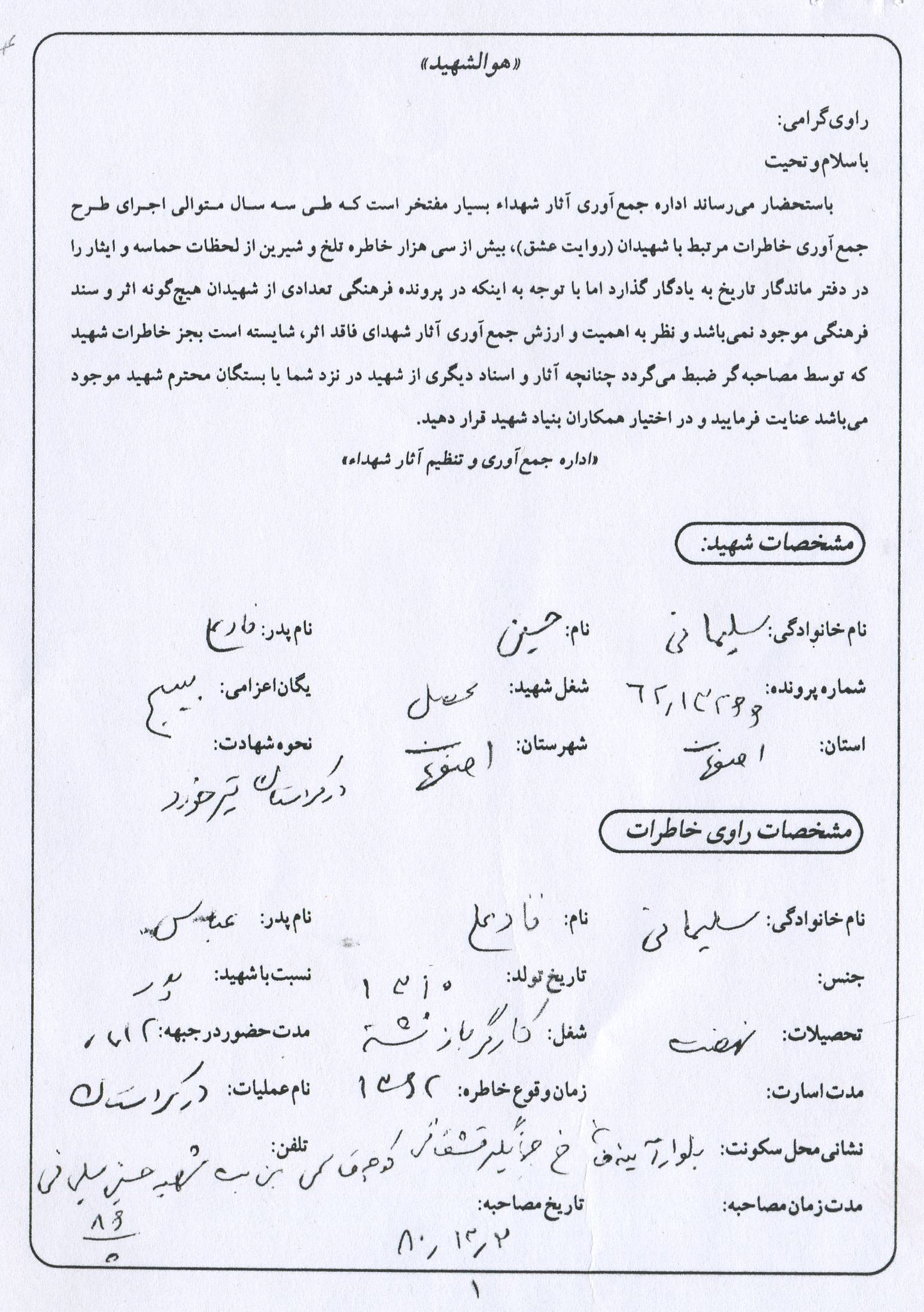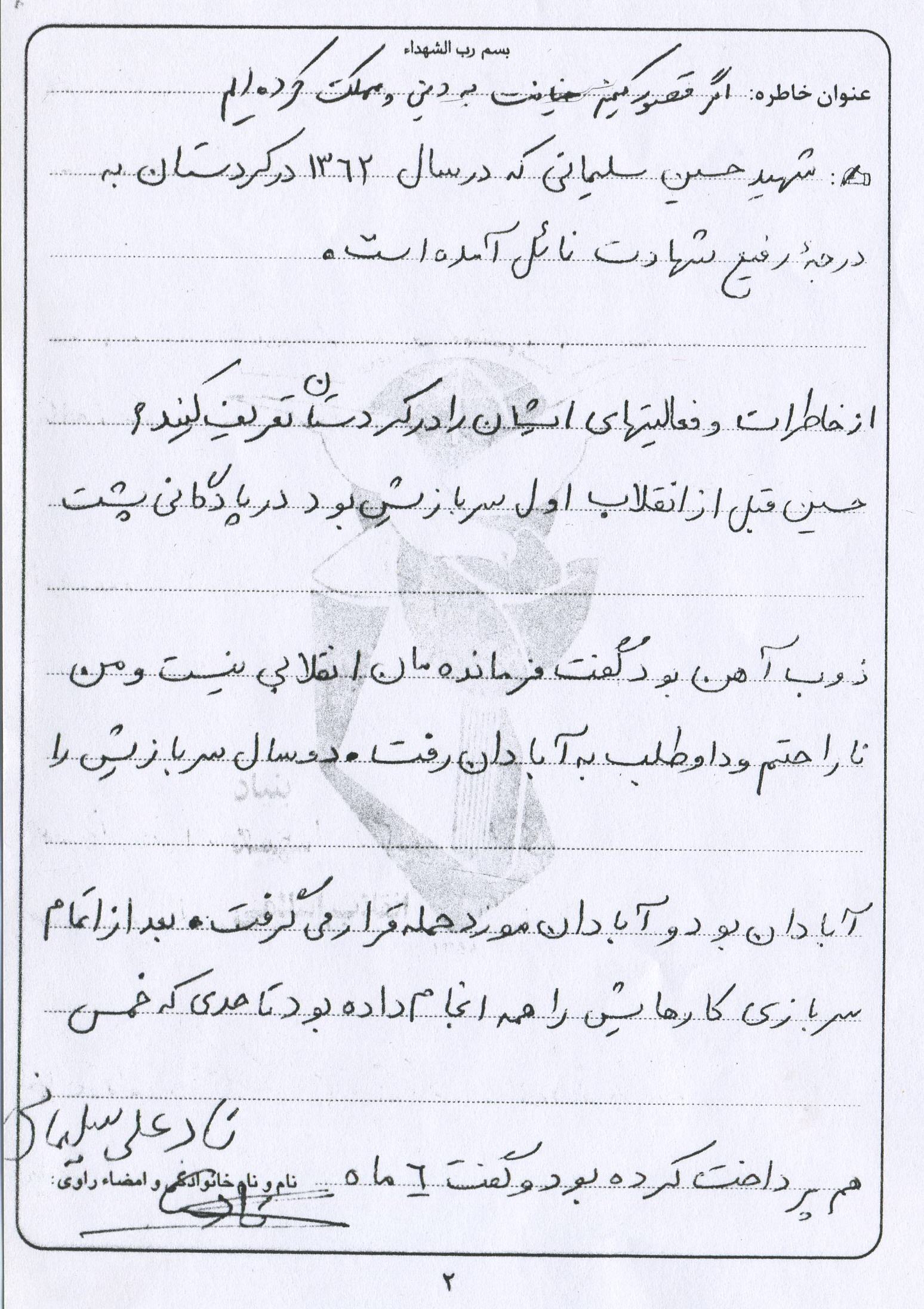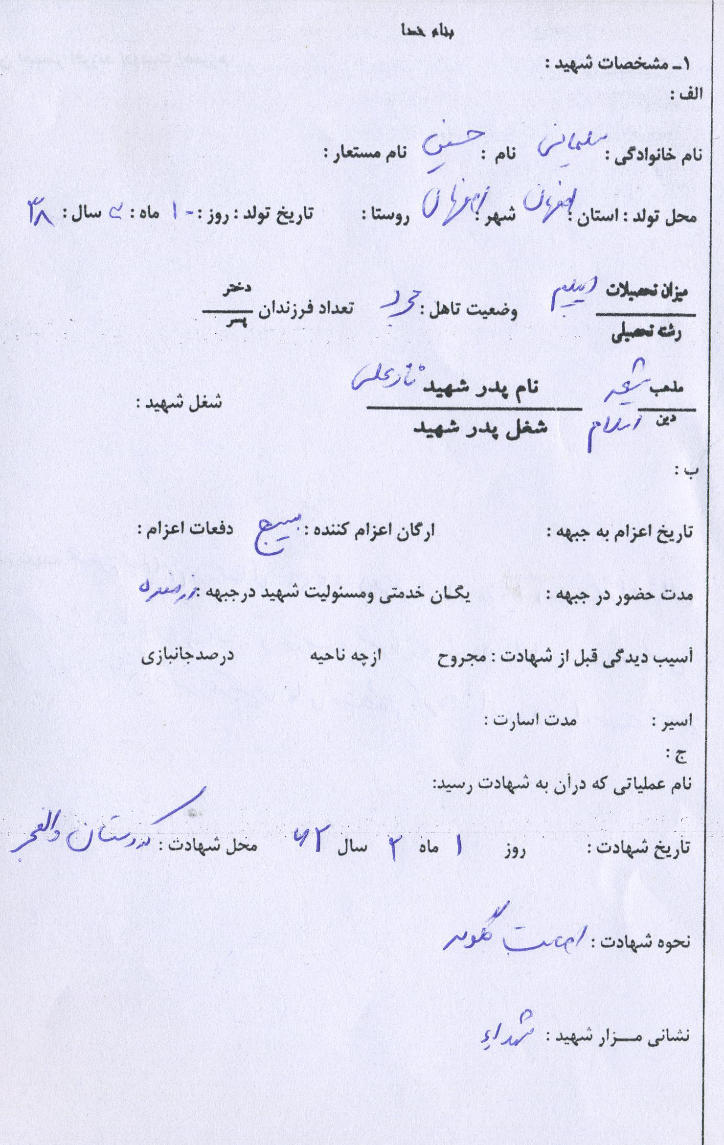 اسناد مرتبط با شهید حسین سلیمانی حسن آبادی