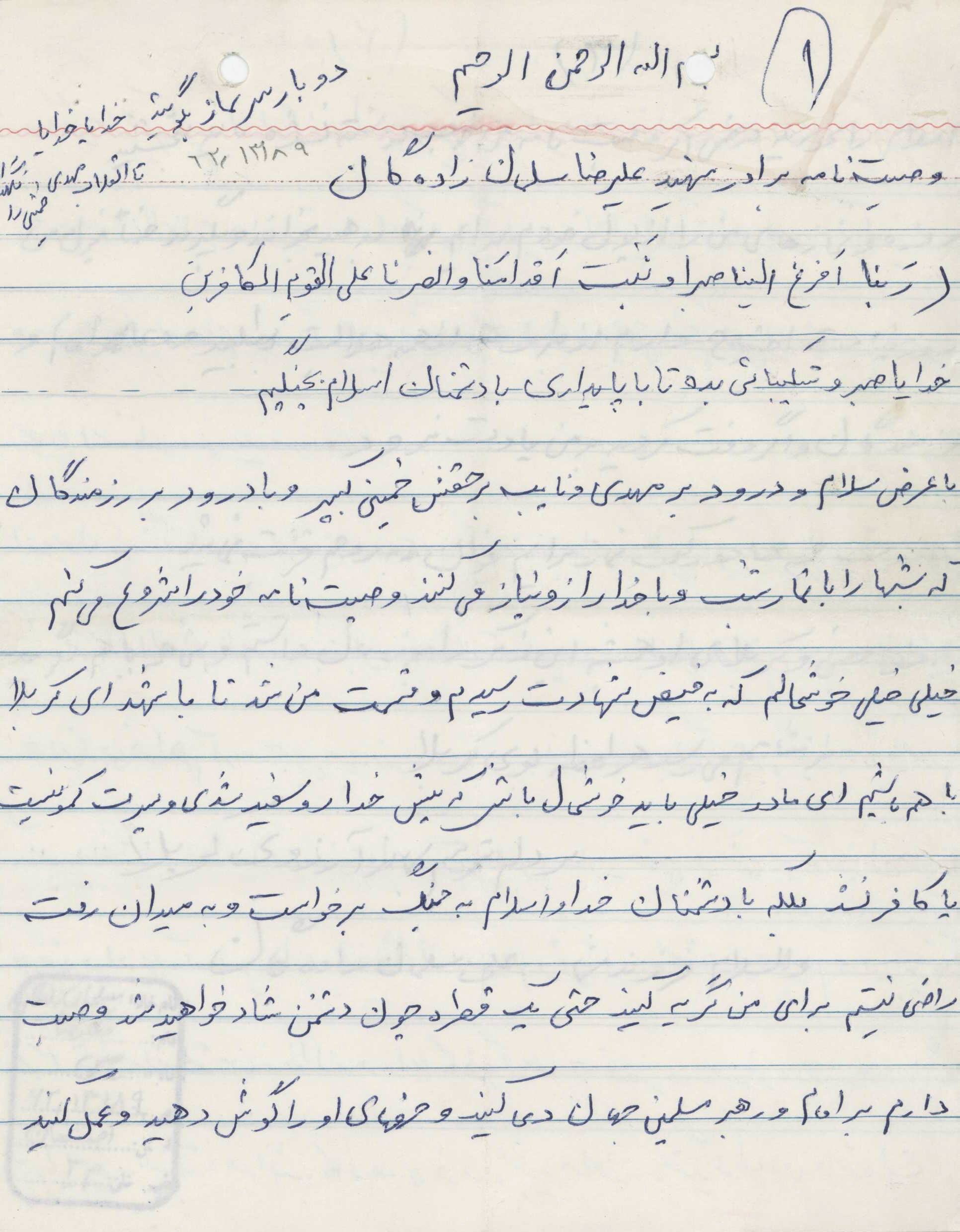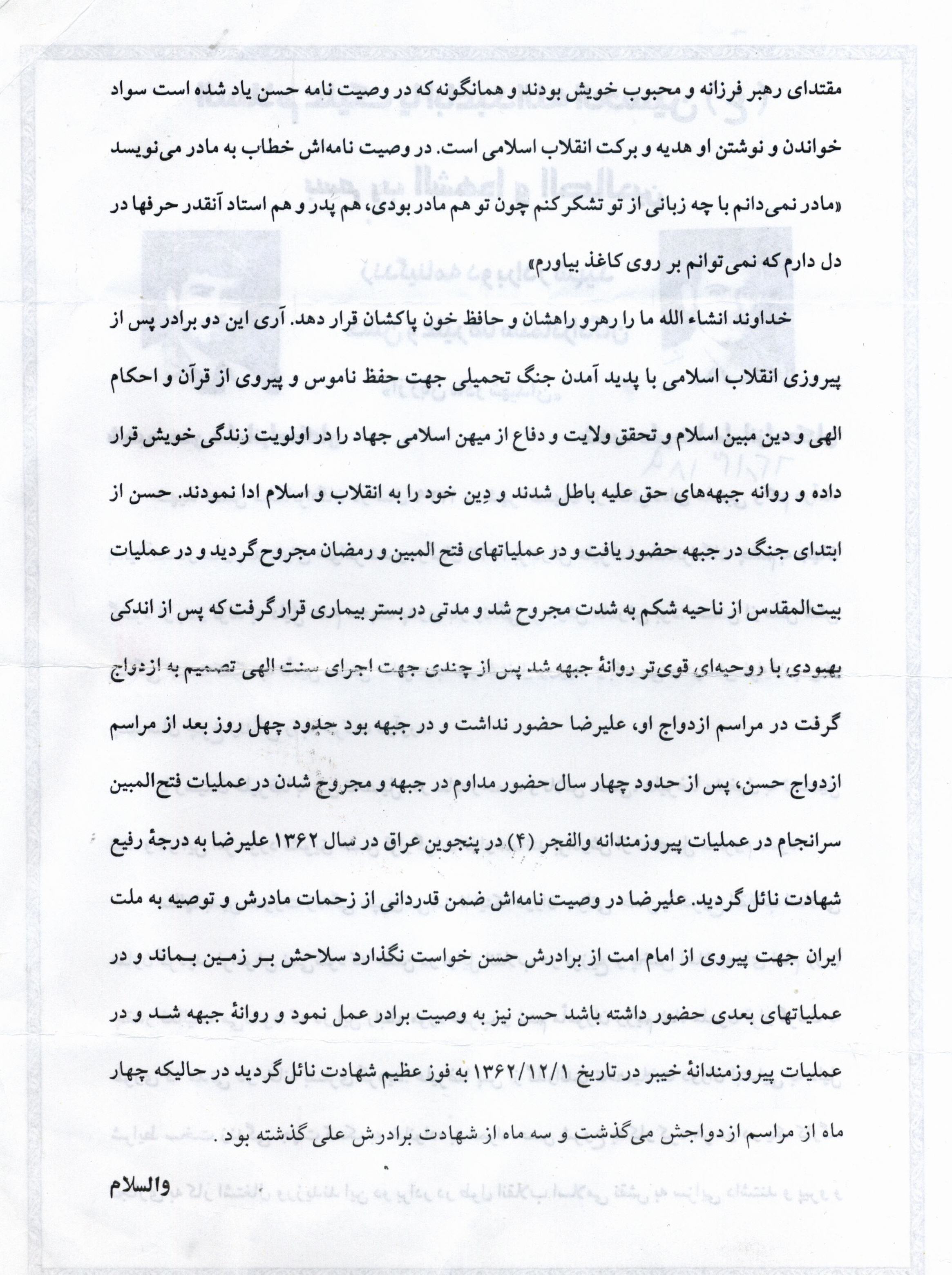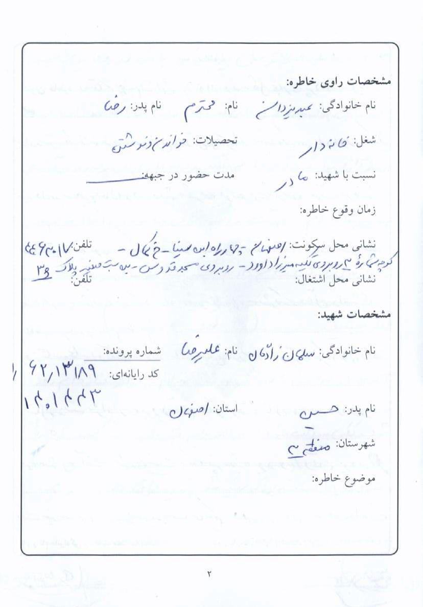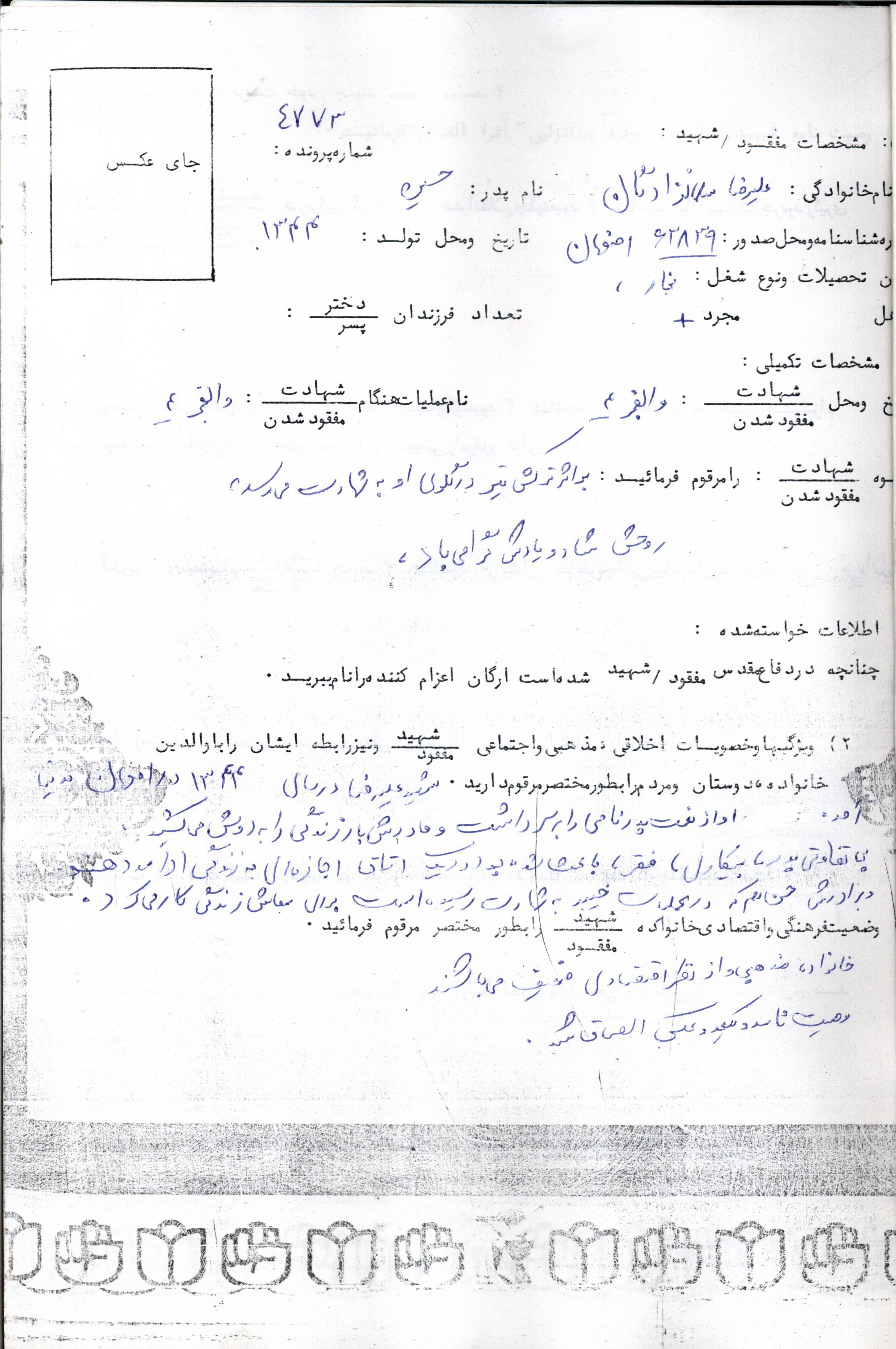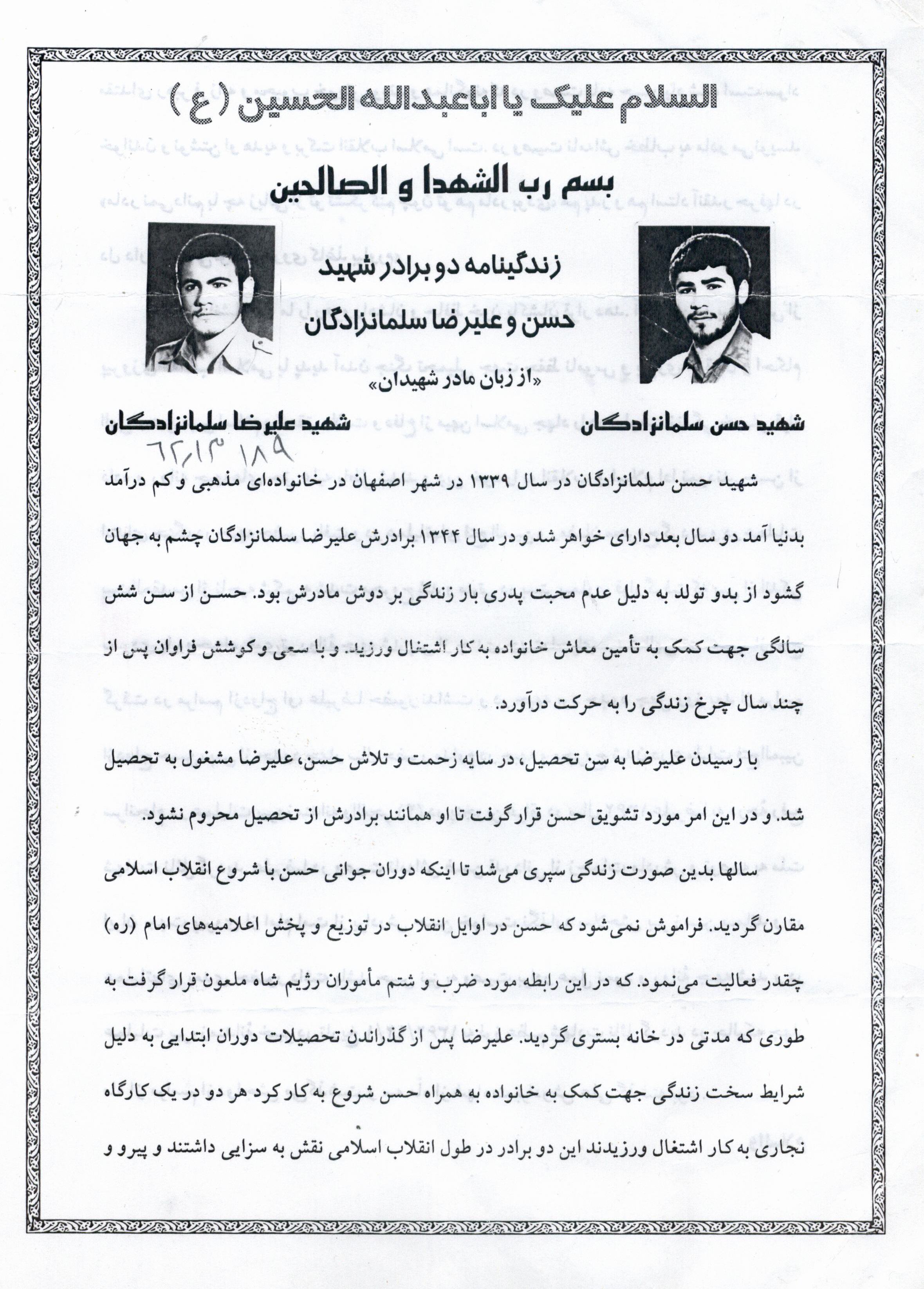اسناد مرتبط با شهید علی رضا سلمان زادگان