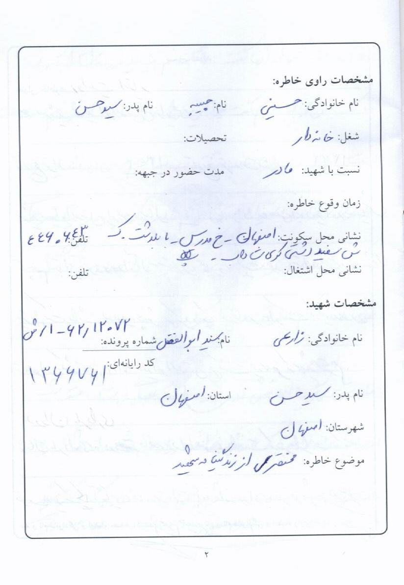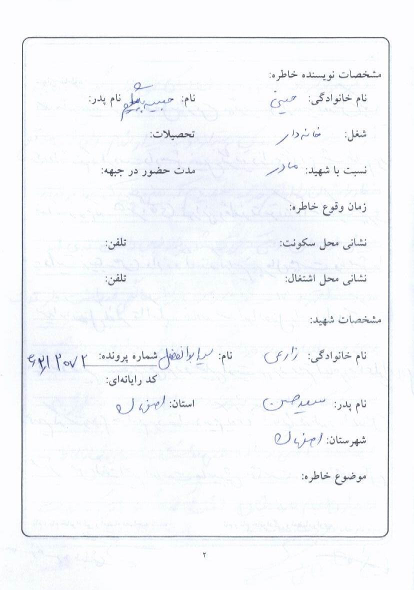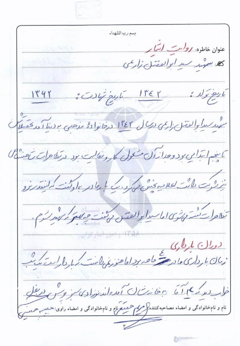 اسناد مرتبط با شهید سیدابوالفضل زارعی
