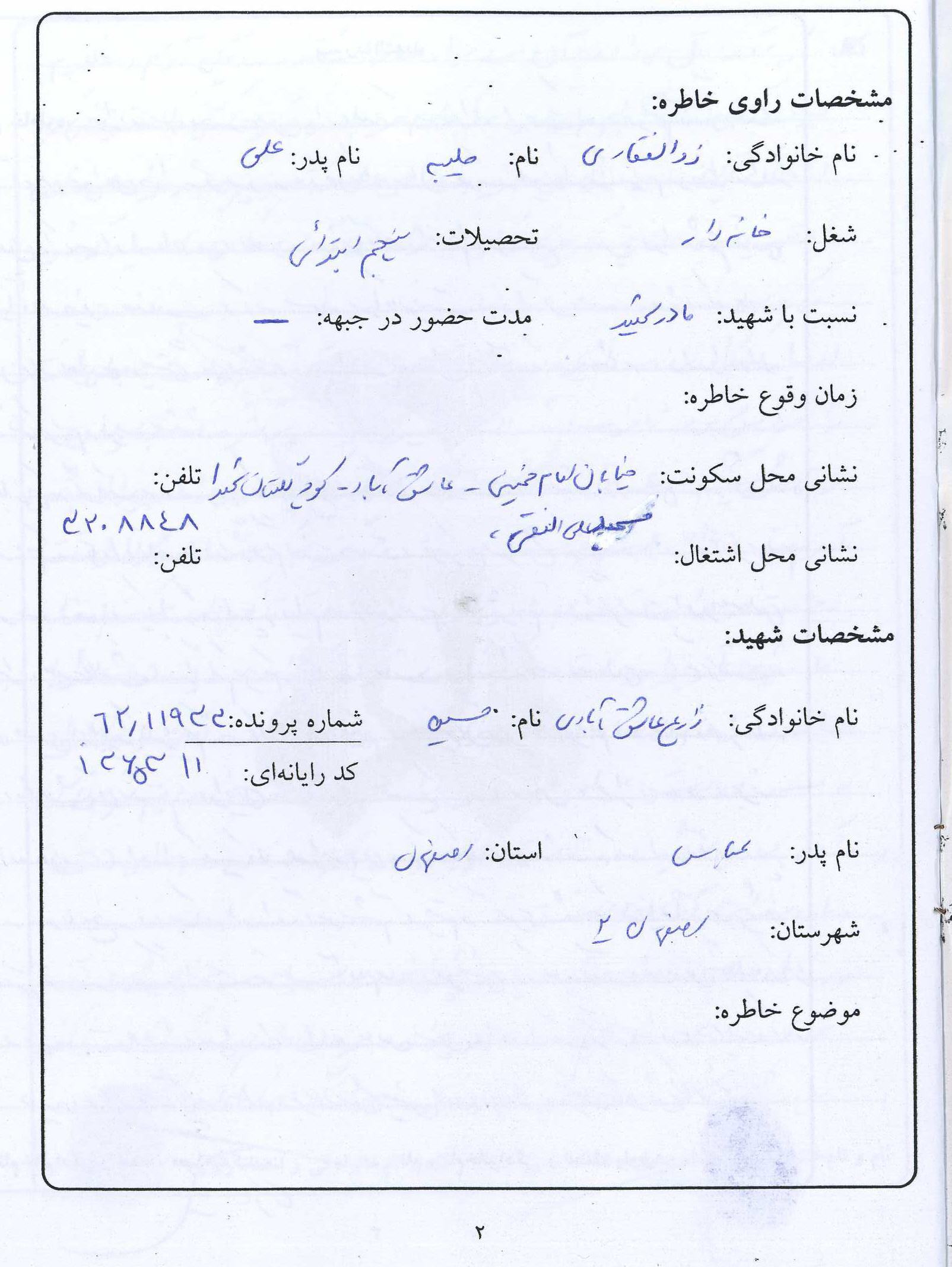 اسناد مرتبط با شهید حسین زارع عاشق آبادی